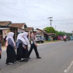 Tingkatkan Kamseltibcarlantas, Polsek Kemuning Gelar ‘Strong Point’ di Jalur Lintas Timur Inhil