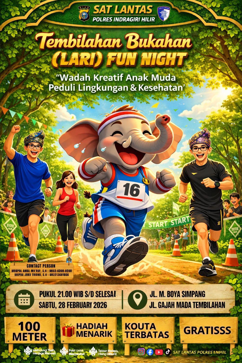 “Kegiatan ‘Tembilahan Bukahan’ ini bukan sekadar ajang lari biasa, melainkan wadah kreatif bagi anak muda untuk berekspresi sekaligus menjaga kebugaran di malam hari. Kami ingin membangun kedekatan dengan masyarakat, khususnya kaum milenial dan Gen Z, agar bersama-sama peduli terhadap kesehatan dan lingkungan,” ujar AKP Ricky Marzuki dalam keterangannya, Rabu (25/2).