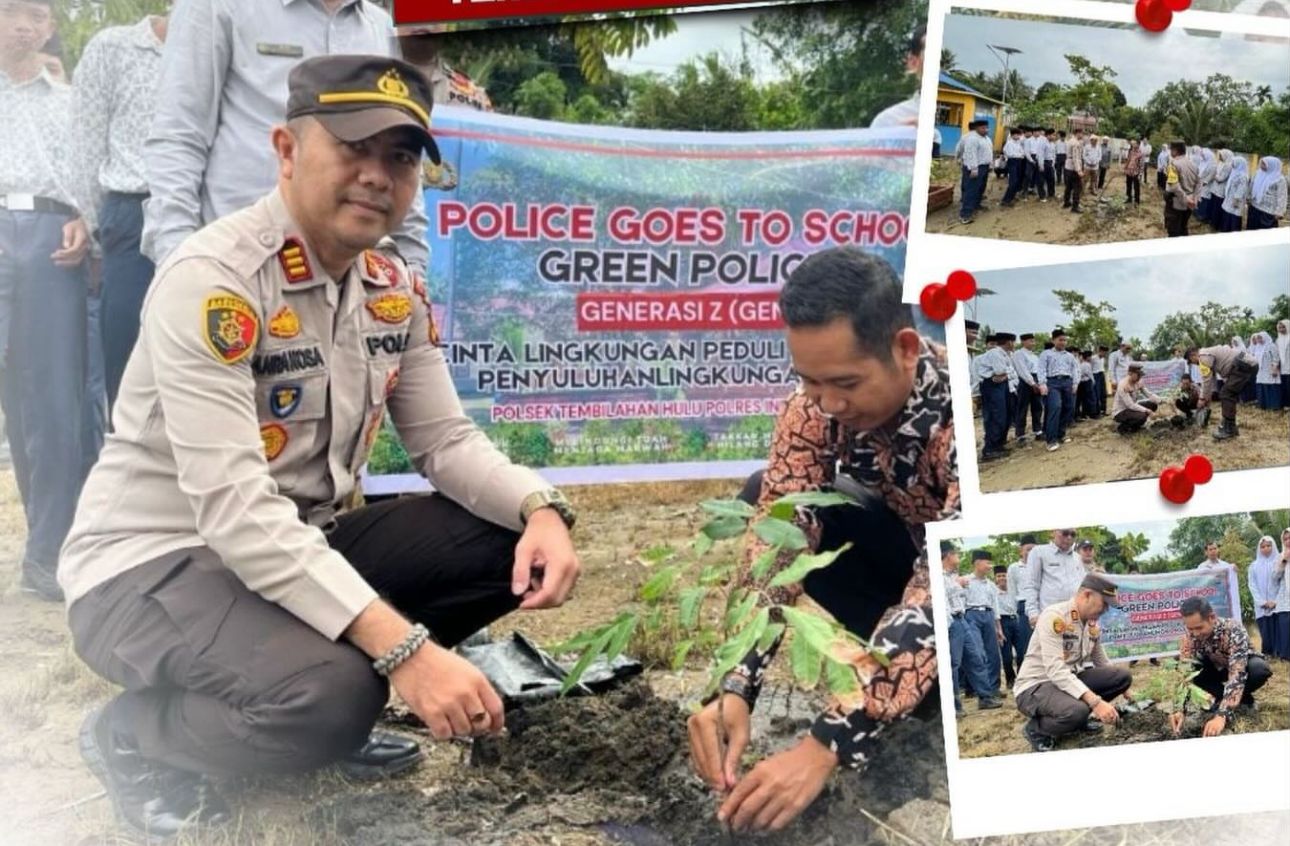 TEMBILAHAN HULU, (Swarabuana.com) – Dalam upaya nyata memitigasi perubahan iklim dan melestarikan ekosistem lokal, Kepolisian Sektor (Polsek) Tembilahan Hulu melaksanakan program “Police Goes To School” yang dirangkaikan dengan penanaman bibit pohon di halaman MTS Annur, Jalan Propinsi Matoa Mas, Parit 7, Desa Pulau Palas, Kamis (16/4/2026).