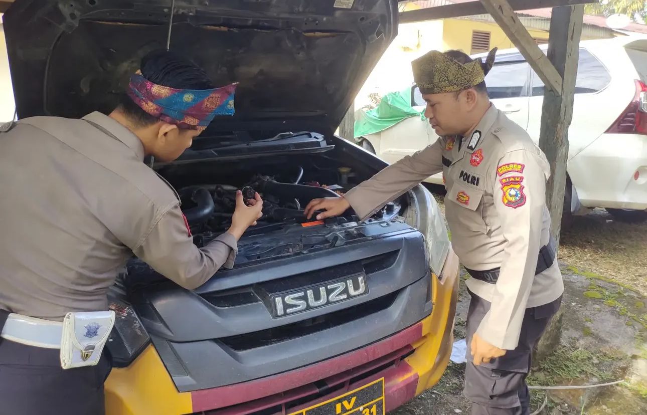 Dalam rangkaian prosedur tersebut, Pawas IPDA Tri Agung Prasetiyo juga melakukan pemeriksaan fisik terhadap kendaraan operasional.