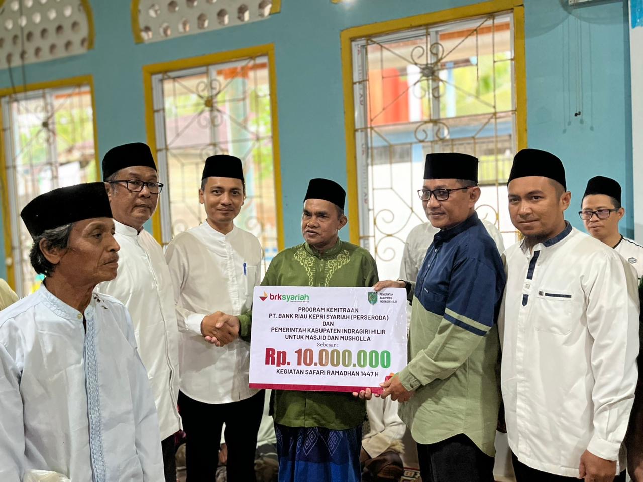 Kegiatan Safari Ramadhan ini juga diwarnai dengan penyerahan bantuan nyata bagi kaum duafa, antara lain 50 paket santunan dari Baznas Inhil, serta paket sembako dari Bank BPR Gemilang (10 paket) dan BNI Tembilahan (30 paket). Selain itu, Bank Riau Kepri Syariah menyerahkan bantuan sebesar Rp10.000.000 untuk kemakmuran masjid dan mushola di wilayah tersebut.