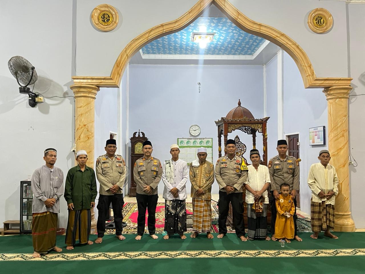 “Pada hari ini kami melaksanakan giat Sholat Tarawih berjamaah bersama warga di Mesjid Haqqul Yaqin. Kehadiran kami di sini untuk memastikan seluruh rangkaian ibadah masyarakat berjalan dengan aman, tertib, dan lancar,” ujar AKP Anra Nosa usai pelaksanaan sholat.