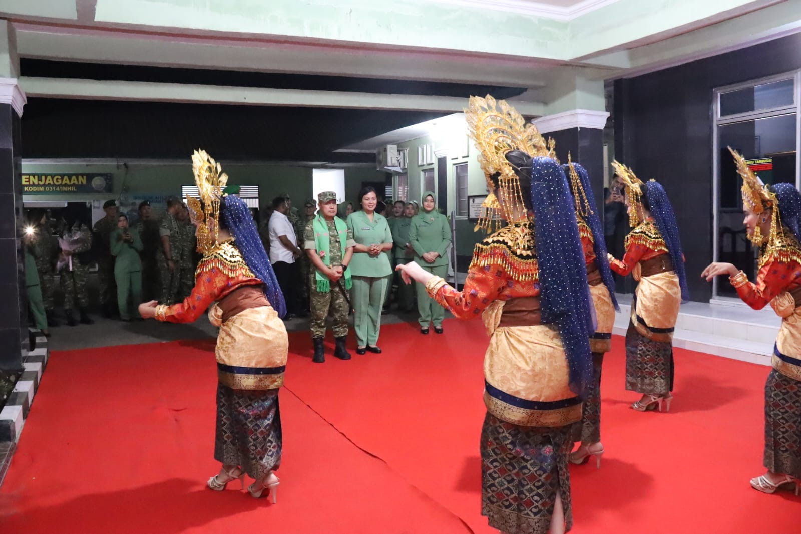 Kedatangan Pangdam didampingi Ketua Persit Kartika Chandra Kirana (KCK) PD XIX/Tuanku Tambusai, Ny. Yulia Agus Hadi Waluyo. Kehadiran rombongan disambut dengan gembira oleh prajurit Kodim 0314/Inhil melalui tradisi militer sebagai bentuk penghormatan kepada pimpinan di lingkungan TNI Angkatan Darat.