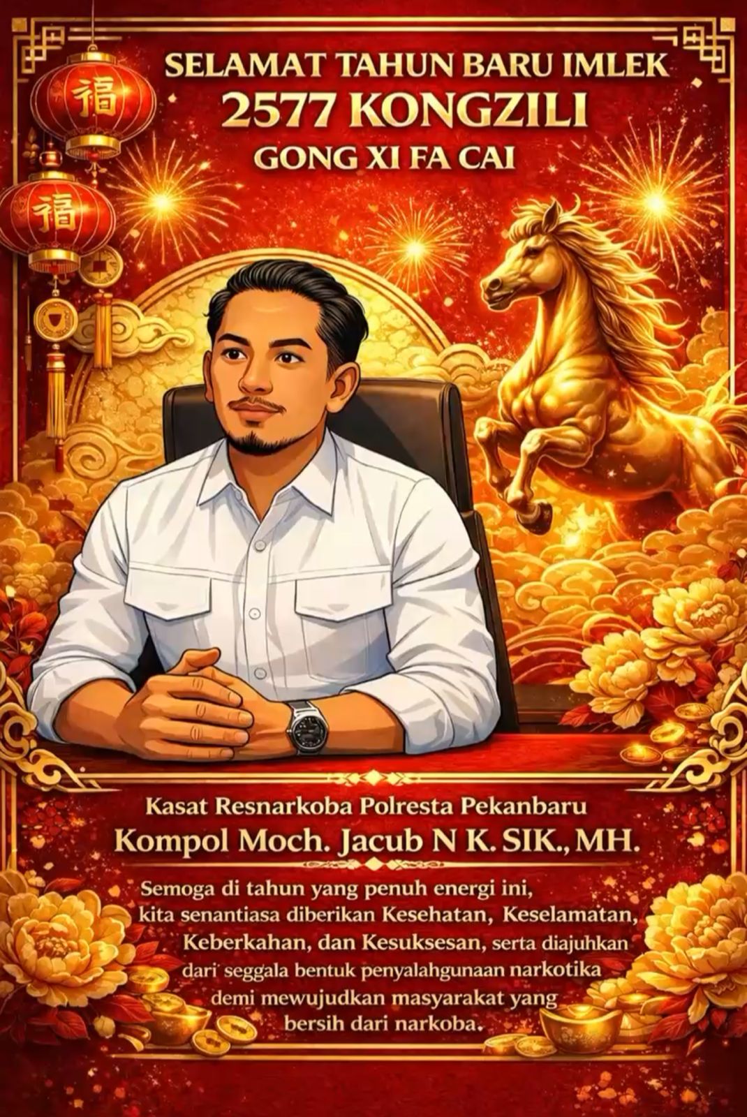 PEKANBARU, (Swarabuana.com) – Memasuki perayaan Tahun Baru Imlek 2577 Kongzili, Satuan Reserse Narkoba (Satresnarkoba) Polresta Pekanbaru mengeluarkan seruan khusus bagi masyarakat untuk menjaga produktivitas dan kesehatan tanpa jeratan narkotika.
