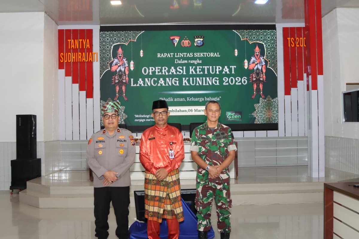 Kegiatan ini dipimpin oleh Wakapolres Indragiri Hilir Kompol Maitertika, S.H., M.H., dan dihadiri oleh Asisten Bidang Perekonomian dan Pembangunan Rakyat H. Dwi Budiyanto, S.Sos., serta perwakilan instansi sektoral seperti Dishub, Bulog, KSOP Tembilahan, dan Jasa Raharja.