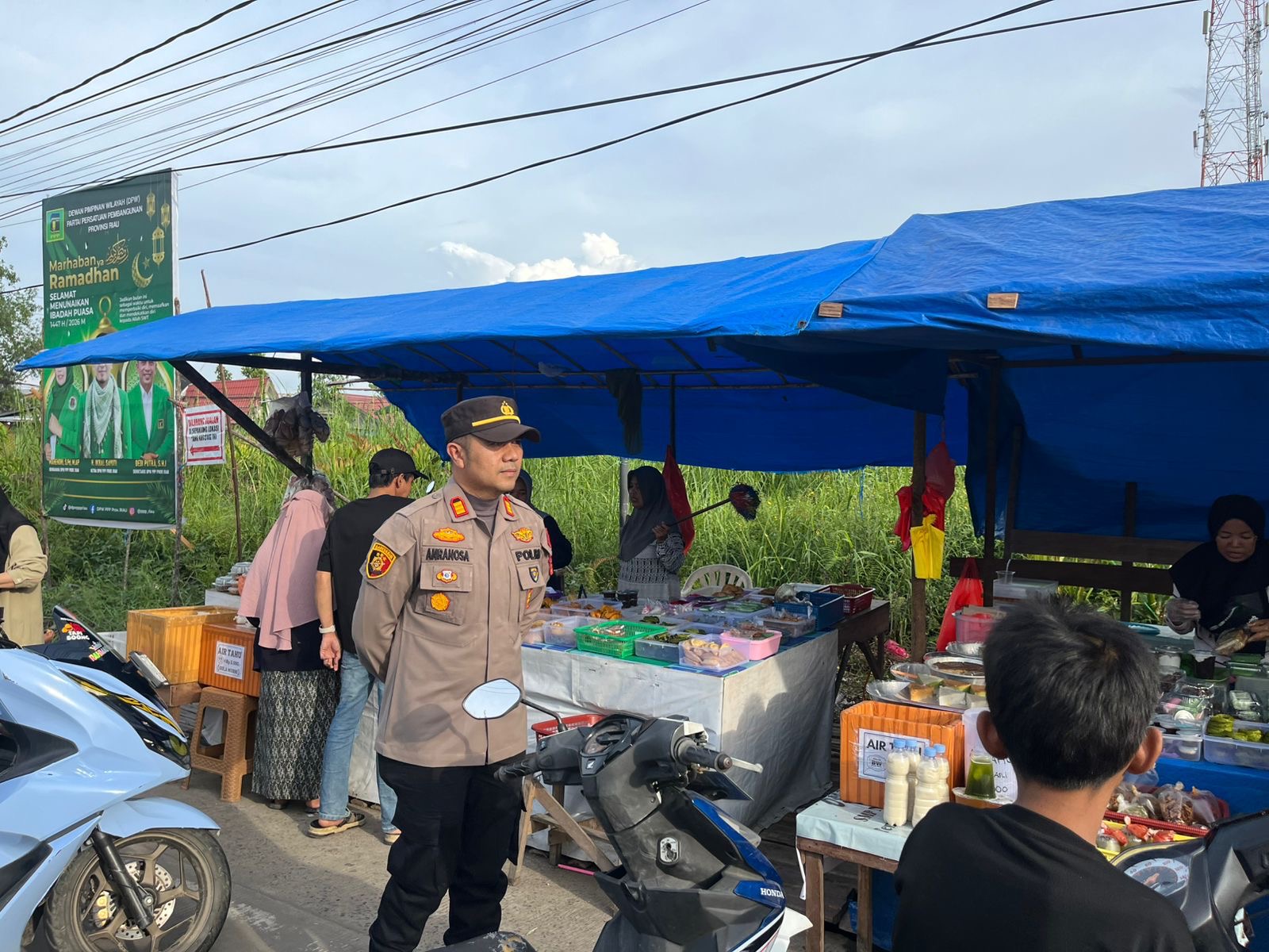 TEMBILAHAN HULU, (Swarabuana.com) – Guna memberikan rasa aman dan nyaman bagi masyarakat yang sedang berburu takjil di bulan suci Ramadan, Kepala Kepolisian Sektor (Kapolsek) Tembilahan Hulu, AKP Anra Nosa, S.H., M.H., memimpin langsung jalannya pengamanan di kawasan Pasar Wadai (Pasar Ramadan), Senin (23/02/2026) sore.