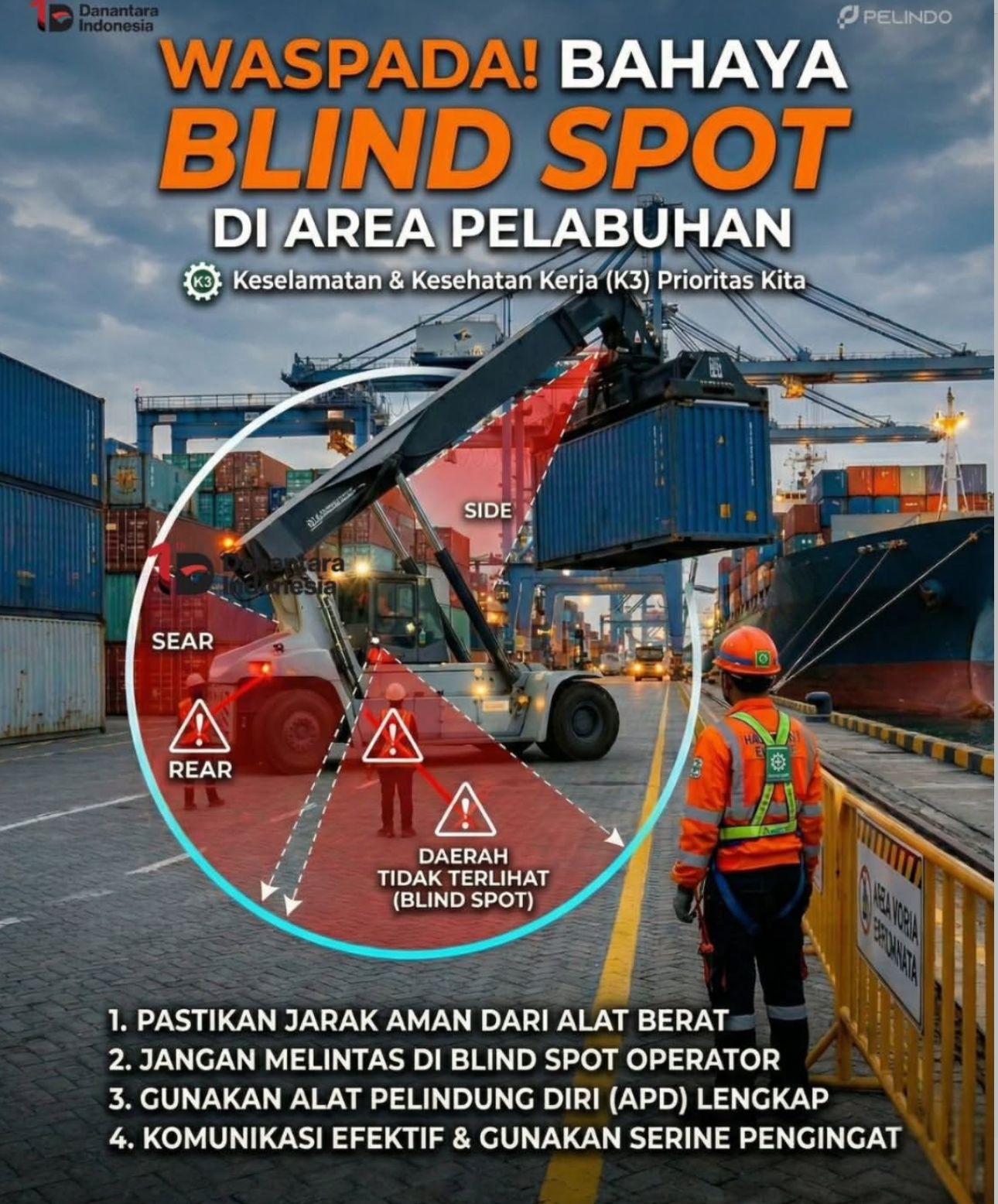 “Kami tidak akan pernah berhenti melakukan edukasi dan memberikan himbauan kepada seluruh insan pelabuhan. Konsistensi adalah kunci dalam K3. Dengan memahami di mana letak blind spot operator, setiap individu memiliki kendali penuh atas keselamatan dirinya sendiri dan rekan kerjanya. Mari kita ciptakan lingkungan kerja yang aman dan sehat, karena ada keluarga yang menanti kita di rumah,” tegas Riky Armadi.