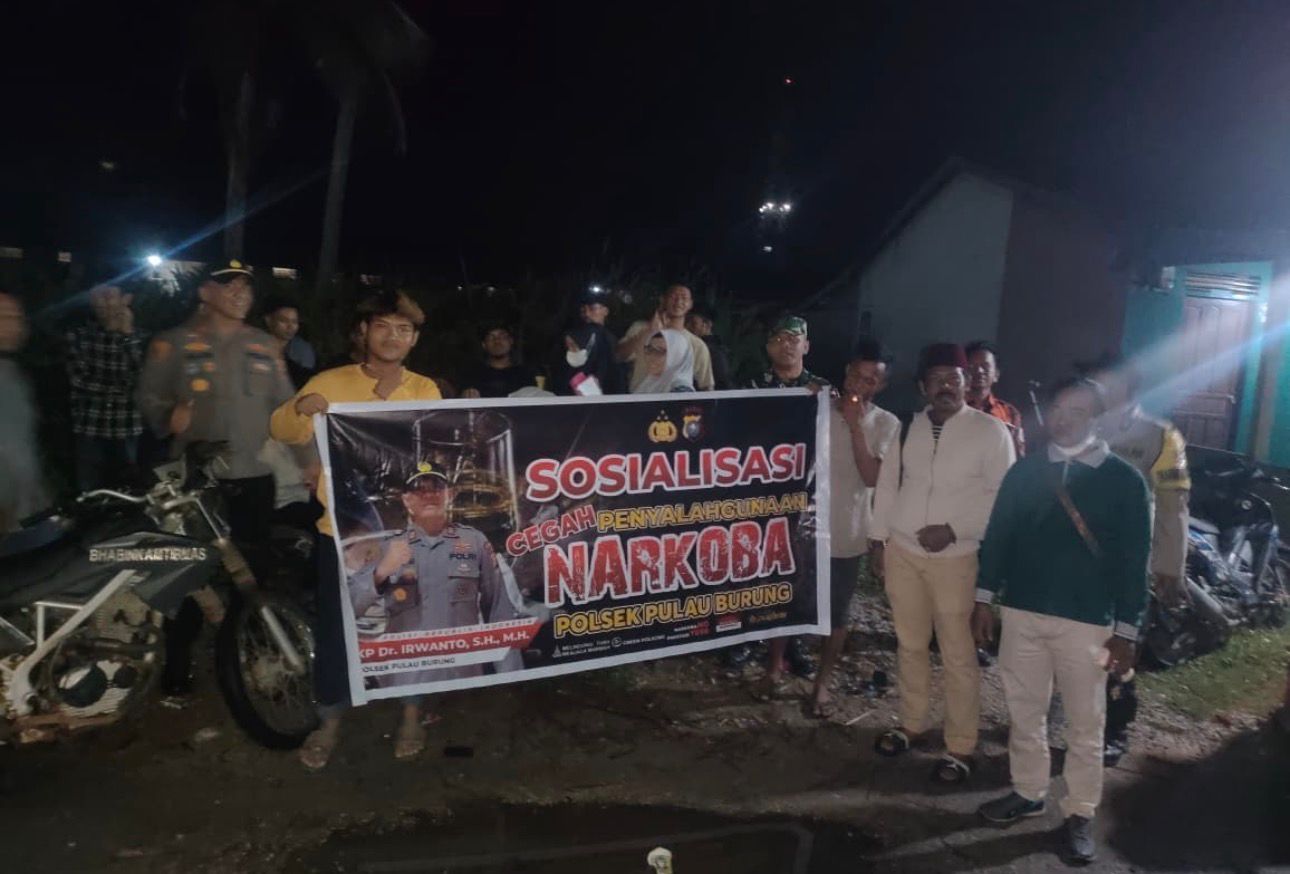 PULAU BURUNG, (Swarabuana.com) – Kepolisian Sektor (Polsek) Pulau Burung berkomitmen menciptakan wilayah bebas narkoba melalui langkah preventif yang agresif. Di bawah komando langsung Kapolsek Pulau Burung, AKP Dr. Irwanto, S.H., M.H., jajaran kepolisian menggelar kegiatan sosialisasi pencegahan penyalahgunaan narkoba secara langsung kepada kelompok pemuda dan masyarakat di lingkungan pemukiman warga, Selasa (21/4/2026) malam. Kegiatan ini mengedepankan pendekatan dialogis dengan menyambangi titik-titik kumpul warga.