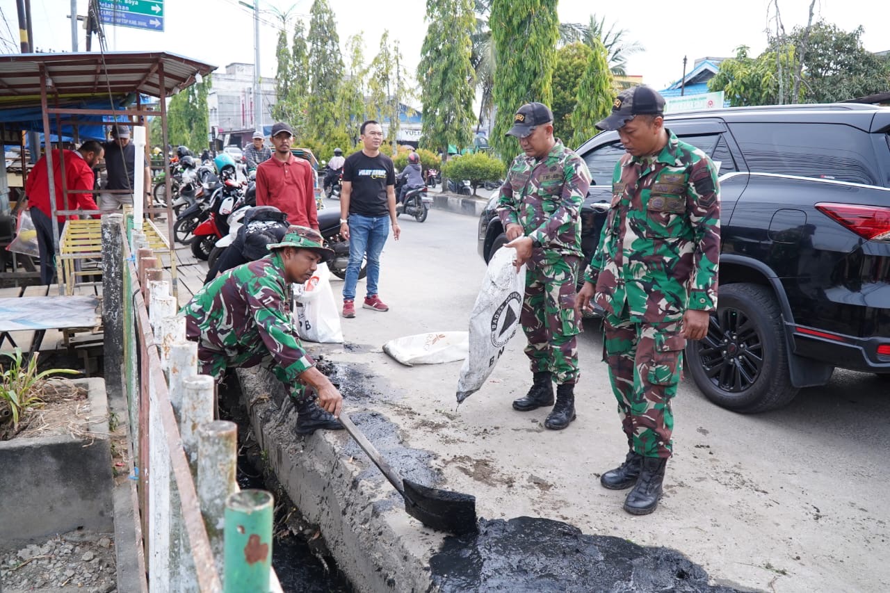 Kegiatan gotong royong ini berlangsung dengan penuh semangat. Personel TNI tampak bahu-membahu membersihkan saluran drainase dan mengangkut sampah ke kendaraan pengangkut yang telah disiapkan.