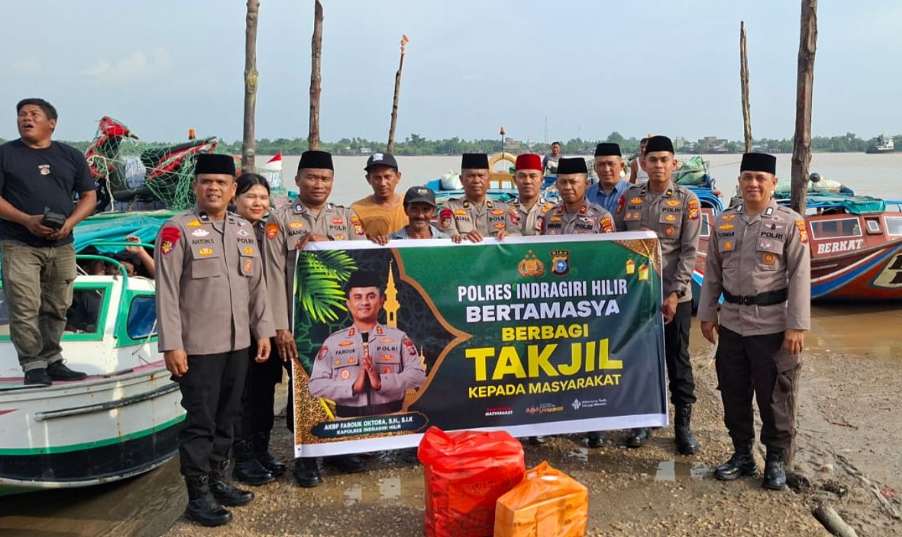 Kapolres Indragiri Hilir AKBP Farouk Oktora, S.H., S.I.K. menyampaikan apresiasi atas pelaksanaan kegiatan sosial berbagi takjil yang dilaksanakan oleh jajaran Polres Indragiri Hilir di kawasan Pelabuhan Kuala Enok.