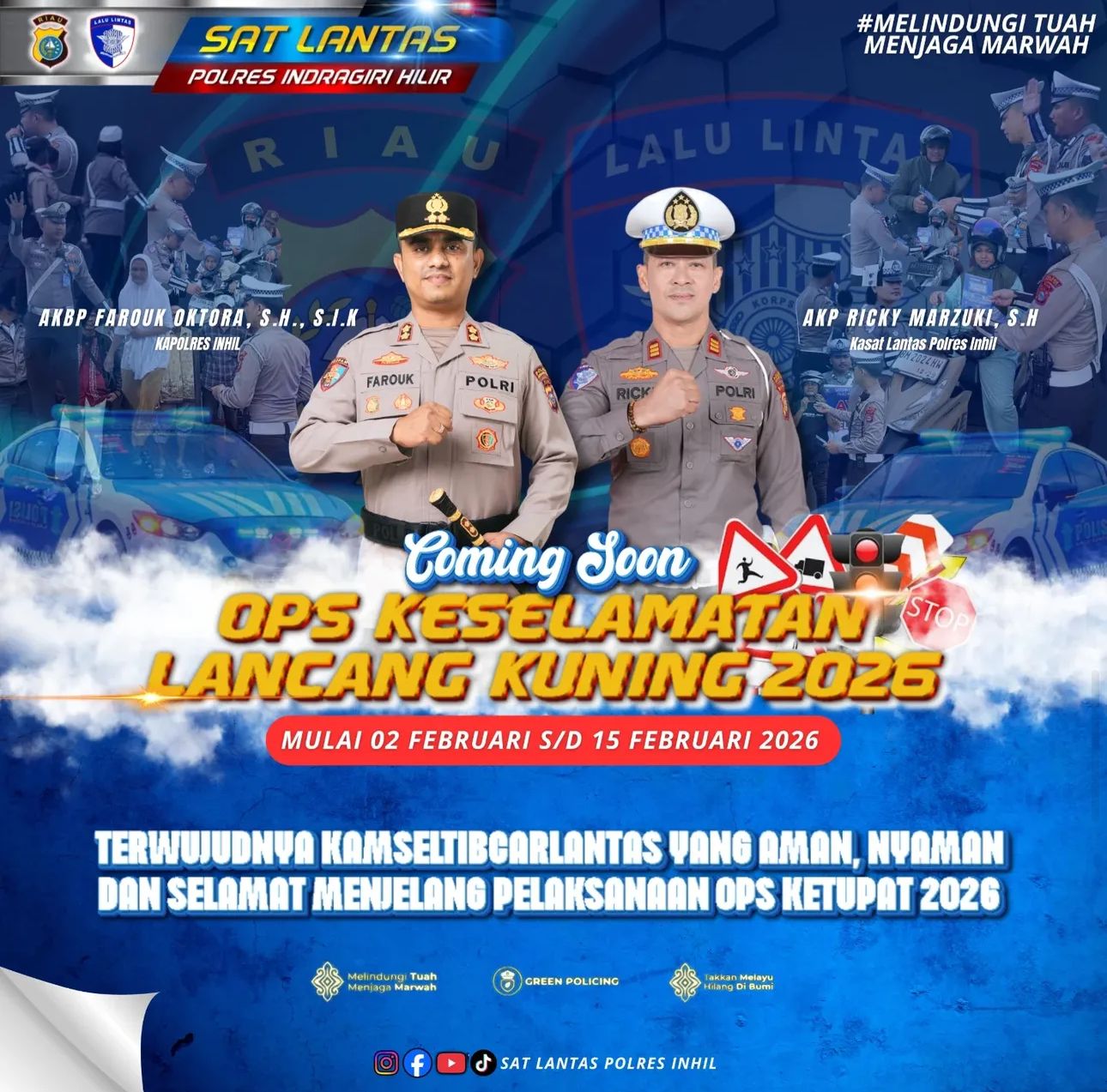 INDRAGIRI HILIR, (Swarabuana.com) – Menjelang pelaksanaan Operasi Ketupat 2026, Satuan Lalu Lintas (Sat Lantas) Polres Indragiri Hilir resmi mengumumkan pelaksanaan Operasi Keselamatan Lancang Kuning 2026. Terwujudnya Kamseltibcarlantas yang Aman, Nyaman dan Selamat.