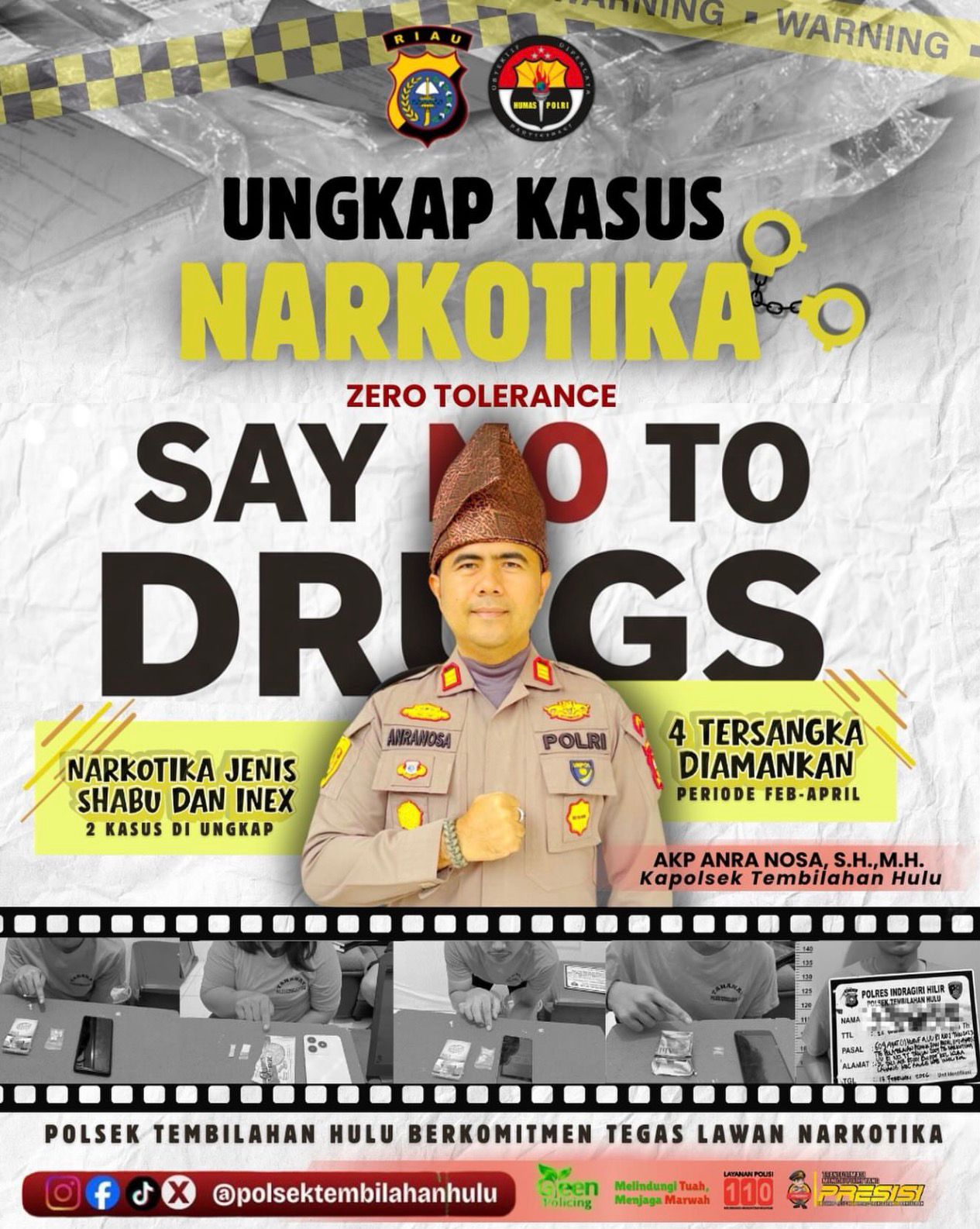 “Kami tidak memberikan ruang sedikit pun bagi narkoba. ‘Zero Tolerance’ adalah harga mati demi melindungi generasi bangsa dari kehancuran akibat penyalahgunaan zat terlarang,” tegas AKP Anra Nosa dalam keterangan resminya.