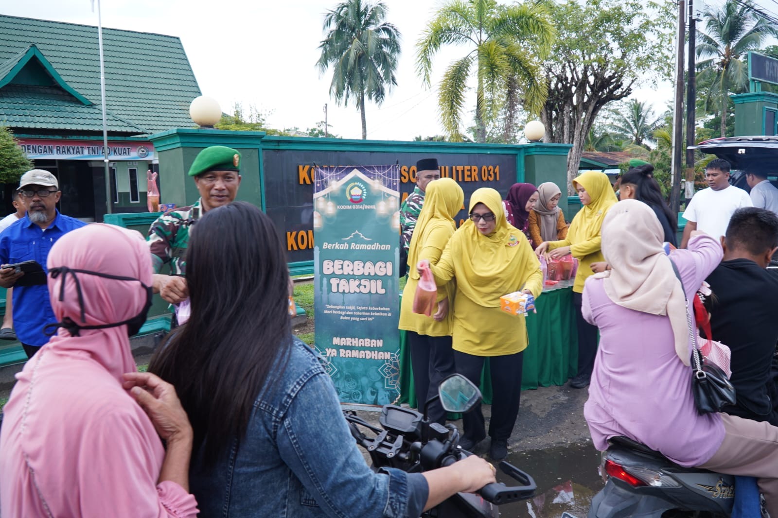 Komandan Kodim (Dandim) 0314/Inhil, Letkol Arm Wahib Mustofa Fathurrahman, M.Han., melalui Pasi Intel Kodim 0314/Inhil, Kapten Inf Agusturrahim, menyampaikan bahwa kegiatan berbagi takjil merupakan salah satu program rutin yang dilaksanakan Kodim 0314/Inhil setiap bulan Ramadan dengan tujuan untuk membantu meringankan beban masyarakat, terutama bagi mereka yang menu untuk berbuka puasa.