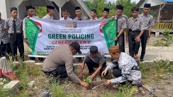 KATEMAN, INDRAGIRI HILIR, (Swarabuana.com) – Mendukung penuh program Green Policing yang dicanangkan oleh Kapolda Riau, Polsek Kateman melaksanakan aksi nyata penanaman pohon sekaligus edukasi lingkungan di wilayah hukum Polres Indragiri Hilir. Kegiatan ini dilangsungkan di halaman Pondok Pesantren Daarul Rahman V, Desa Air Tawar, Kecamatan Kateman, pada Rabu (01/04/2026).