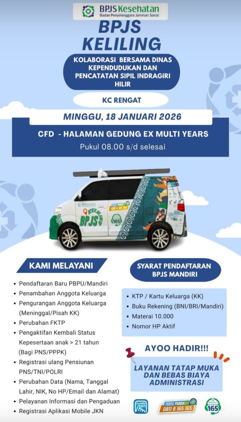 Kegiatan yang dimulai pukul 08.00 WIB hingga selesai ini bertujuan untuk memberikan kemudahan akses bagi warga Indragiri Hilir dalam mengurus administrasi kependudukan sekaligus kepesertaan jaminan kesehatan di satu lokasi yang sama.