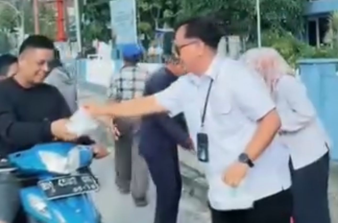 Dalam aksi tersebut, jajaran manajemen dan staf Pelindo turun langsung membagikan paket takjil gratis guna membantu warga menyegerakan berbuka puasa.