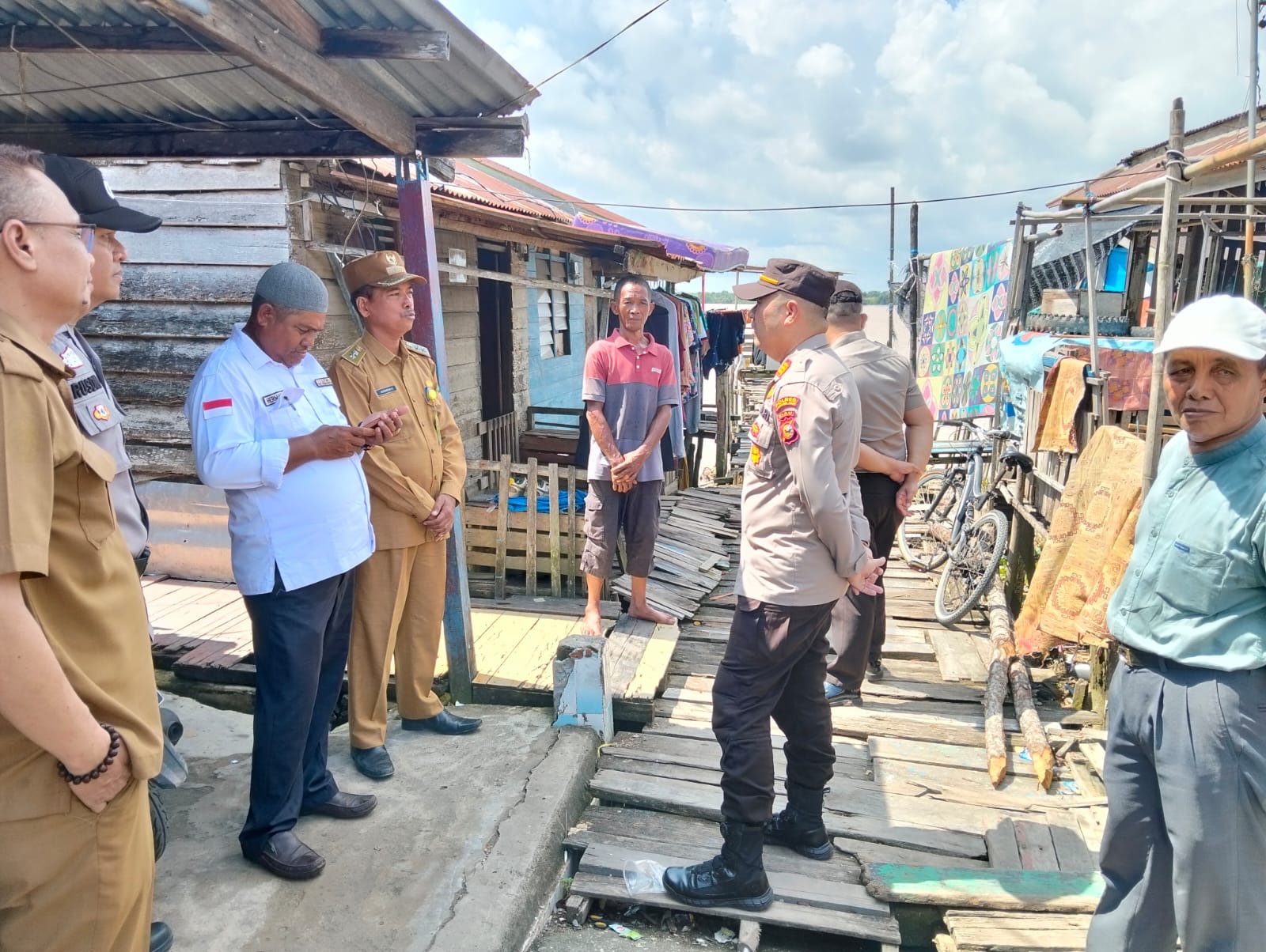 Kedatangan jajaran Polsek Tembilahan Hulu disambut haru oleh warga yang sedang berupaya membersihkan puing-puing sisa kebakaran.