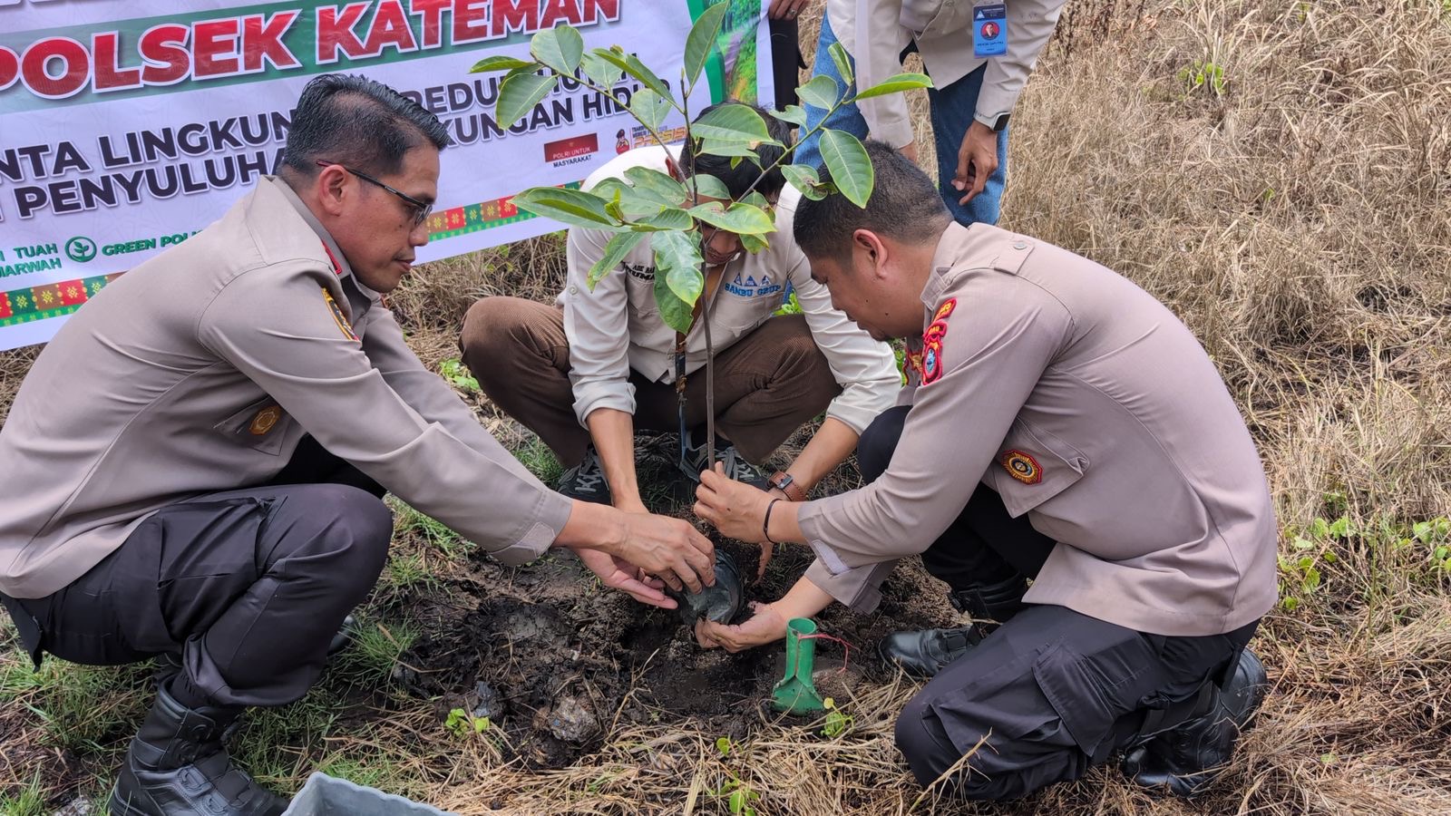 Wujudkan Lingkungan Asri, Polsek Kateman Bersama PT Sambu Tanam Pohon dalam Program Green Policing