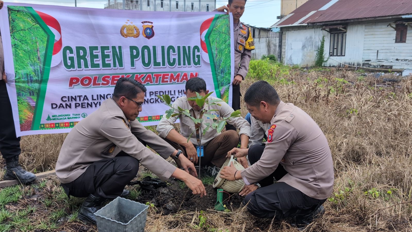 KATEMAN, INDRAGIRI HILIR, (Swarabuana.com) – Menindaklanjuti program prioritas Kapolda Riau dalam pelestarian alam, Kepolisian Sektor (Polsek) Kateman melaksanakan aksi nyata bertajuk Green Policing. Kegiatan yang dipusatkan di Halaman Mapolsek Kateman ini dilaksanakan pada Selasa, 14 April 2026, sebagai bentuk komitmen Polri dalam menjaga keberlangsungan ekosistem lingkungan.