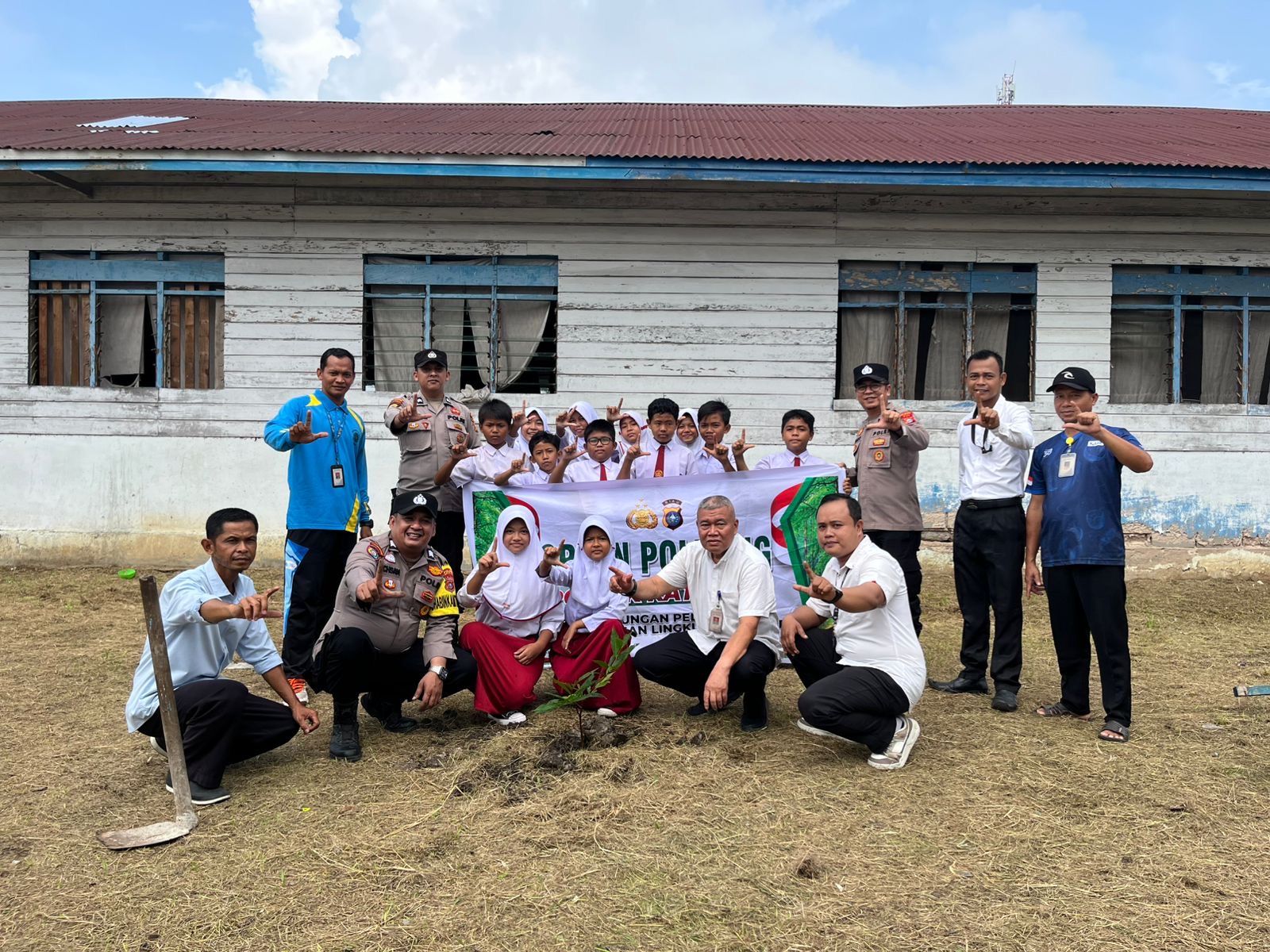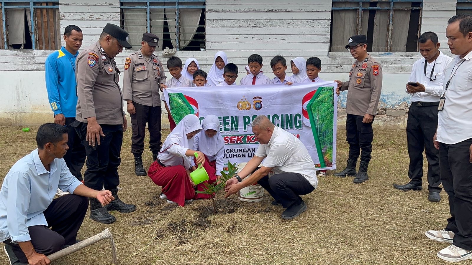 Wujudkan Lingkungan Asri, Polsek Kateman Tanam Pohon di SD 023 Dwipa Abadi Melalui Program Green Policing