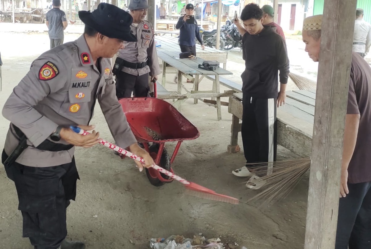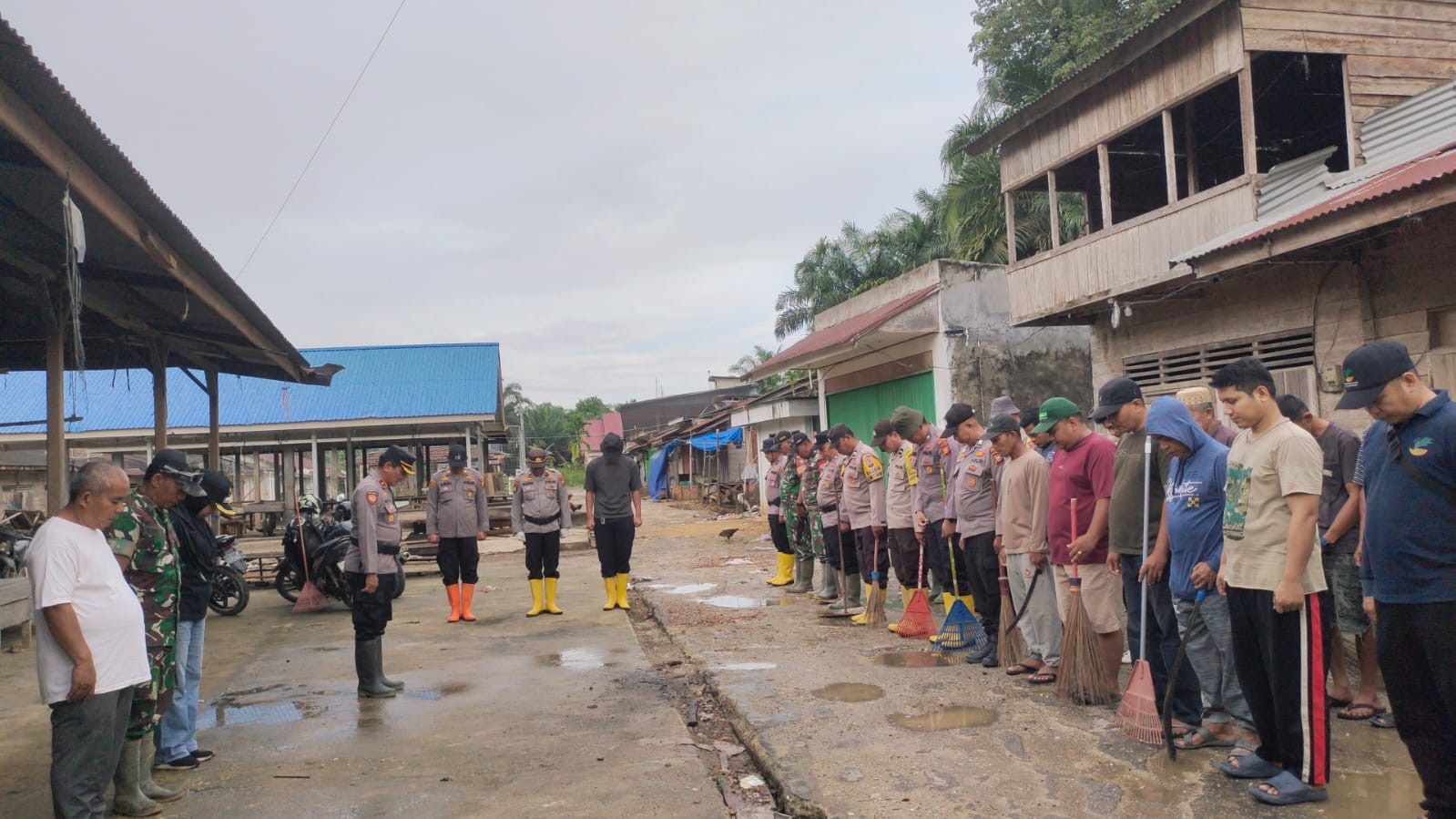 INDRAGIRI HILIR, (Swarabuana.com) – Menindaklanjuti instruksi Presiden Republik Indonesia terkait kepedulian terhadap kebersihan lingkungan dan kesehatan masyarakat, jajaran Kepolisian Sektor (Polsek) Kemuning bersama Unsur Pimpinan Kecamatan (Upika) menggelar kegiatan kurve atau gotong royong massal di kawasan Pasar Desa Air Balui, Kecamatan Kemuning, Kabupaten Indragiri Hilir, Jumat (6/2/2026).