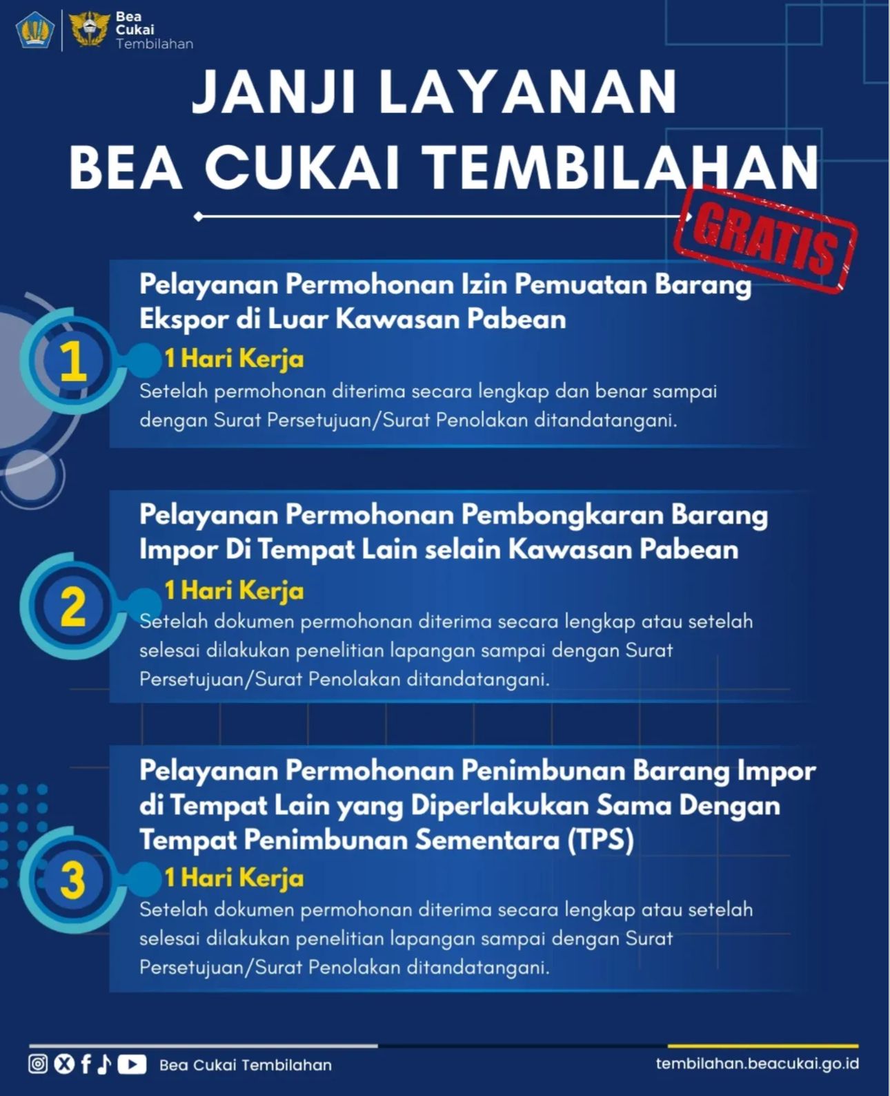 - Penimbunan Barang Impor di Tempat Lain (Sama dengan TPS): Selesai dalam 1 Hari Kerja.