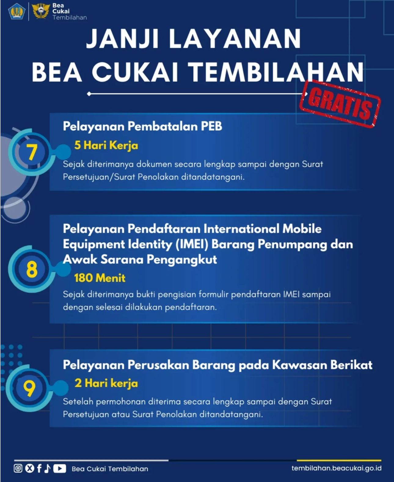 - Pembatalan PEB: Selesai dalam 5 Hari Kerja setelah dokumen diterima lengkap.